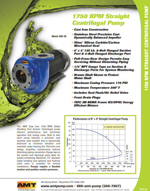 Ver todos los detallesBomba Centrífuga marca AMT, modelo 4261-98, con BOMBA de acero inoxidable para trabajo duro. Maneja sólidos y agua sucia, negra y tratada Impulsor ...
