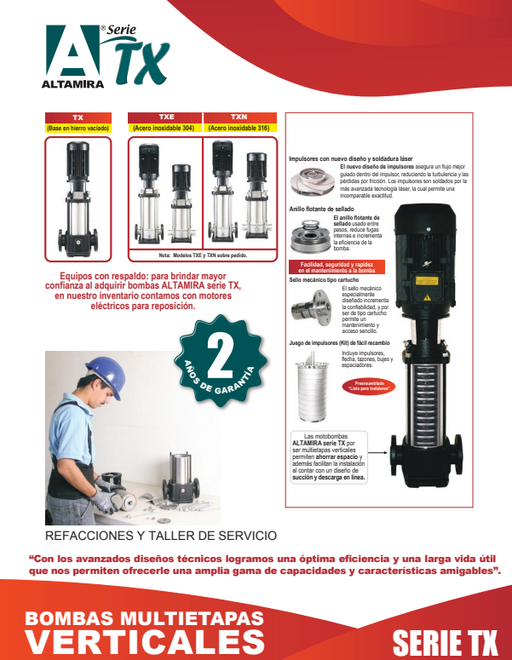 ALTAMIRAPrecio original $ 26,034.00 - Precio original $ 26,034.00Precio original$ 26,034.00$ 26,034.00 - $ 26,034.00Precio actual $ 26,034.00| /BOMBA CENTRÍFUGA MULTIETAPAS MARCA ALTAMIRA MODELO T3.5XE40-4, INCLUYE KIT DE BRIDAS, IMPULSOR Y CARCASA DE ACERO INOXIDABLE 304. IDEALES PARA APLI...