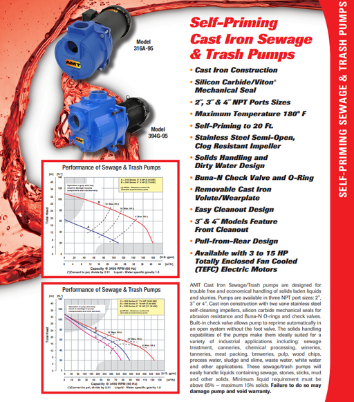 AMTPrecio original $ 57,442.00 - Precio original $ 57,442.00Precio original$ 57,442.00$ 57,442.00 - $ 57,442.00Precio actual $ 57,442.00| /Bomba Autocebante marca AMT modelo 394G-95 con succión y descarga 3x3", para manejo de sólidos y agua sucia, con válvula check interior integrada. ...
