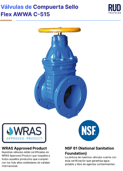 Valvula Compuerta de 2.5" Bridada Hierro Dúctil sello Flex 250 CWP con Volante
